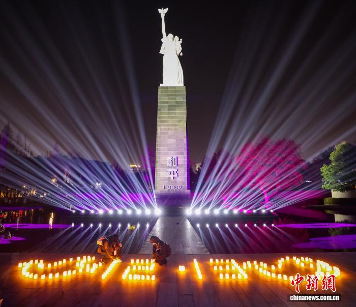 中新网南京12月13日电 (记者 徐珊珊)13日晚,侵华日军南京大屠杀遇难同胞纪念馆广场上,蜡烛点亮,寒夜里一片寂静。 “烛光节·国际和平集会”在此举行。